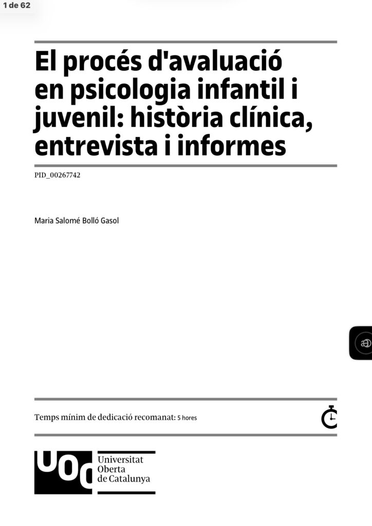Material docent Màster universitari psicologia infantil i juvenil. Universitat Oberta de Catalunya (UOC), openacess, Creative commons.
